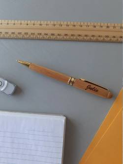 Este bolígrafo con cuerpo de bambú y forma de bate de baseball, es un regalo de lo más original para tu amigo ecologista. Se presenta en un estuche de madera personalizado, que además tienes la posibilidad de grabar con el nombre de tu amigo, para que sea así mucho más personal. El bolígrafo está hecho a mano y además de ser un regalo útil, se presenta como un elemento de decoración de lo más original.